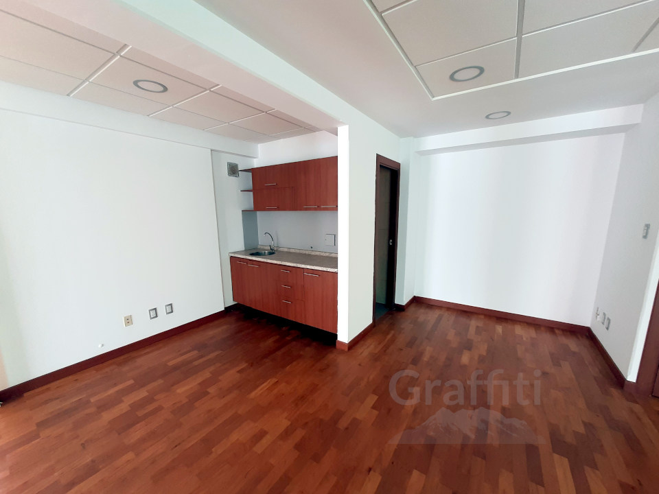 Oficina en alquiler en excelente ubicación de Calacoto, Un ambiente amplio que se puede separar para tener varios espacios. Kichenette, y baño. Portero eléctrico. El edificio cuenta con ascensor y portería. Tiene disponibles dos parqueos, extras para alquilar.